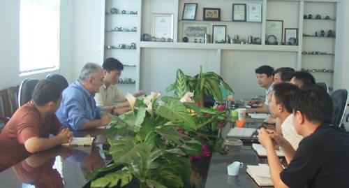 2007年6月26日意大利客戶來公司考察,洽談轉(zhuǎn)盤軸承項目。
