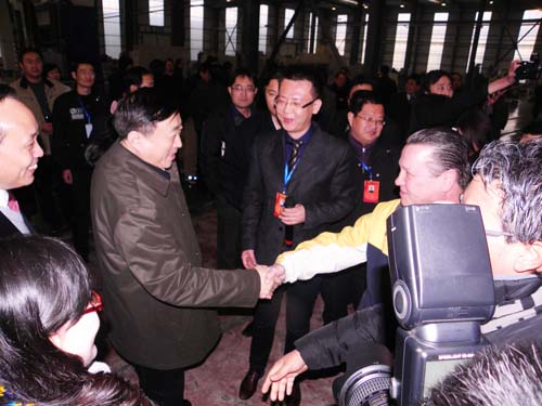 2011年02月16日下午,河南省副省長(zhǎng)張大衛(wèi)一行來(lái)到世必愛(ài)公司視察,世必愛(ài)公司董事長(zhǎng)王迪向省、市領(lǐng)導(dǎo)詳細(xì)介紹了世必愛(ài)的現(xiàn)狀和發(fā)展前景,張大衛(wèi)省長(zhǎng)一行詳細(xì)查看了世必愛(ài)最新開(kāi)發(fā)的串列軸承、高精密轉(zhuǎn)臺(tái)軸承、回轉(zhuǎn)驅(qū)動(dòng)副等專利產(chǎn)品,并詢問(wèn)了其用途和市場(chǎng)前景,王迪董事長(zhǎng)一一做了匯報(bào);在張大衛(wèi)一行來(lái)公司視察時(shí)恰遇美國(guó)與墨西哥客戶來(lái)我公司考察,副省長(zhǎng)張大衛(wèi)與客戶握手并親切交談。